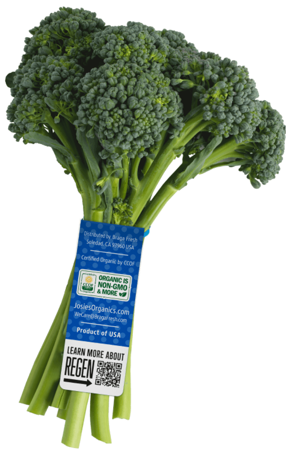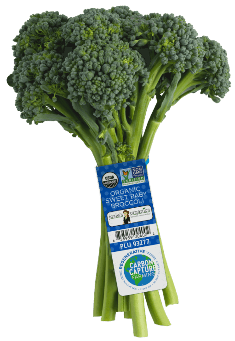 Our sweet baby broccoli is a tender, mild varietal cross between Broccoli and Brazilian Broccoli. What makes this product special is that it was regeneratively grown on the Josie’s home ranch in Soledad, California.
